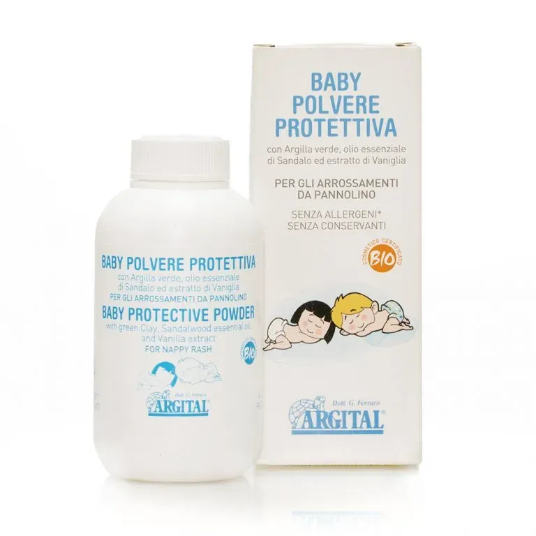Modo d’uso: Durante il cambio del pannolino, dopo avere lavato accuratamente e asciugato bene la pelle, spargere la BABY POLVERE PROTETTIVA, e distribuirla uniformemente, aiutandosi con i polpastrelli o con un batuffolo di cotone, quindi indossare il pannolino. Il prodotto può essere utilizzato alternandolo con la BABY CREMA PROTETTIVA. Si consiglia di massaggiare quest’ultima fino ad assorbimento, prima di indossare il pannolino.