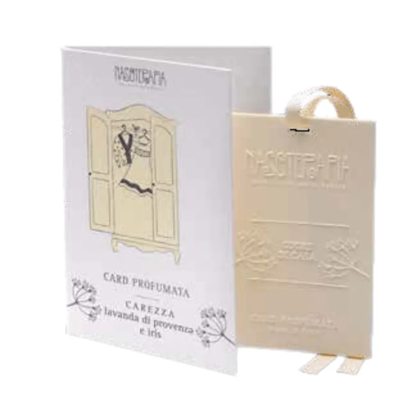 Preziose card profumate ideali da riporre nei cassetti e negli armadi per regalare alla biancheria e agli indumenti un’avvolgente nota di lavanda di provenza e iris.