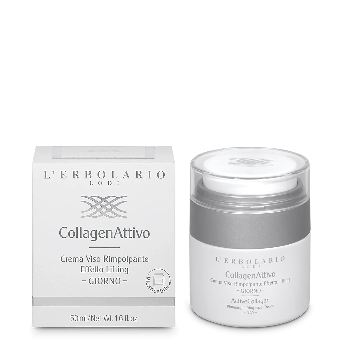 Crema giorno con collagene per il viso ad azione rimpolpante, rassodante e ad effetto lifting, specifica per pelli non più giovanissime o mature.