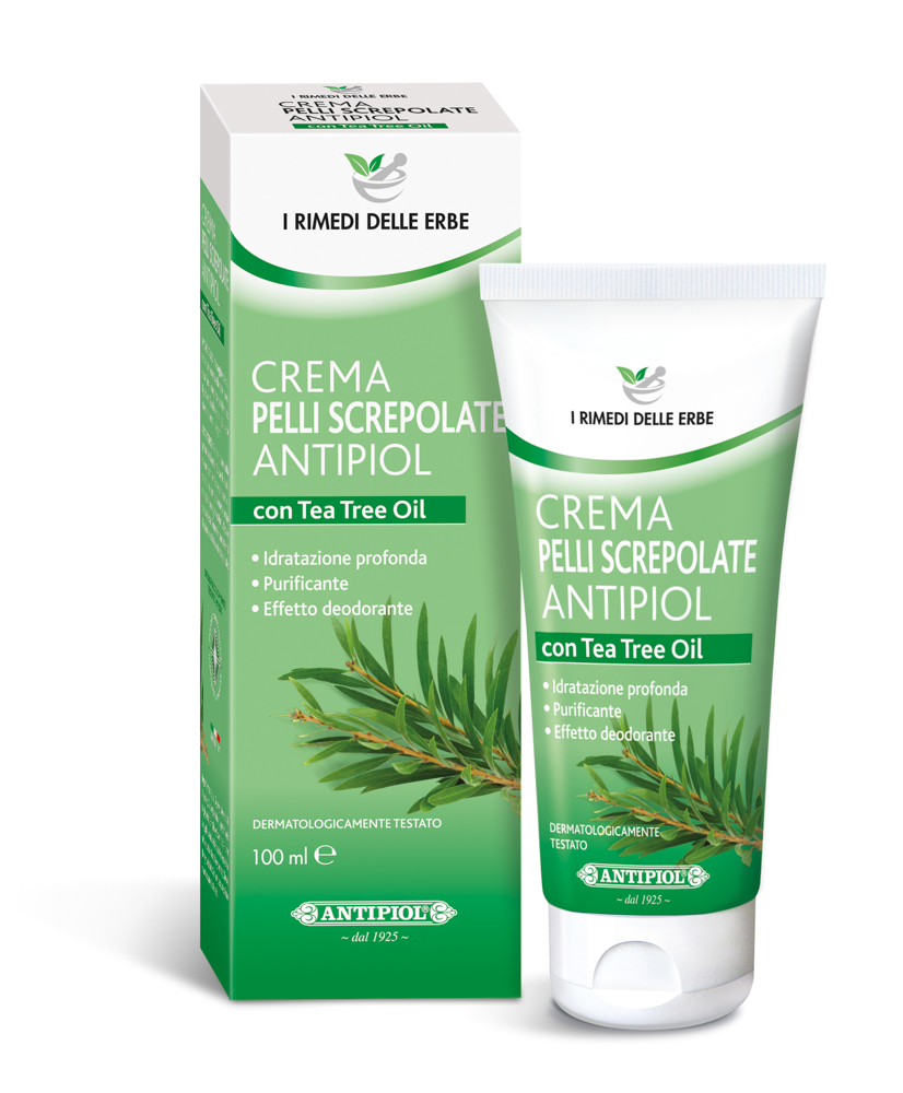 CREMA PELLI SCREPOLATE: Con Tea Tree Oil. Ideale per pelli secche e screpolate. Ottima da utilizzare su talloni, ginocchia e gomiti, aiuta a lenire il fastidio post-rasatura e depilazione del corpo.