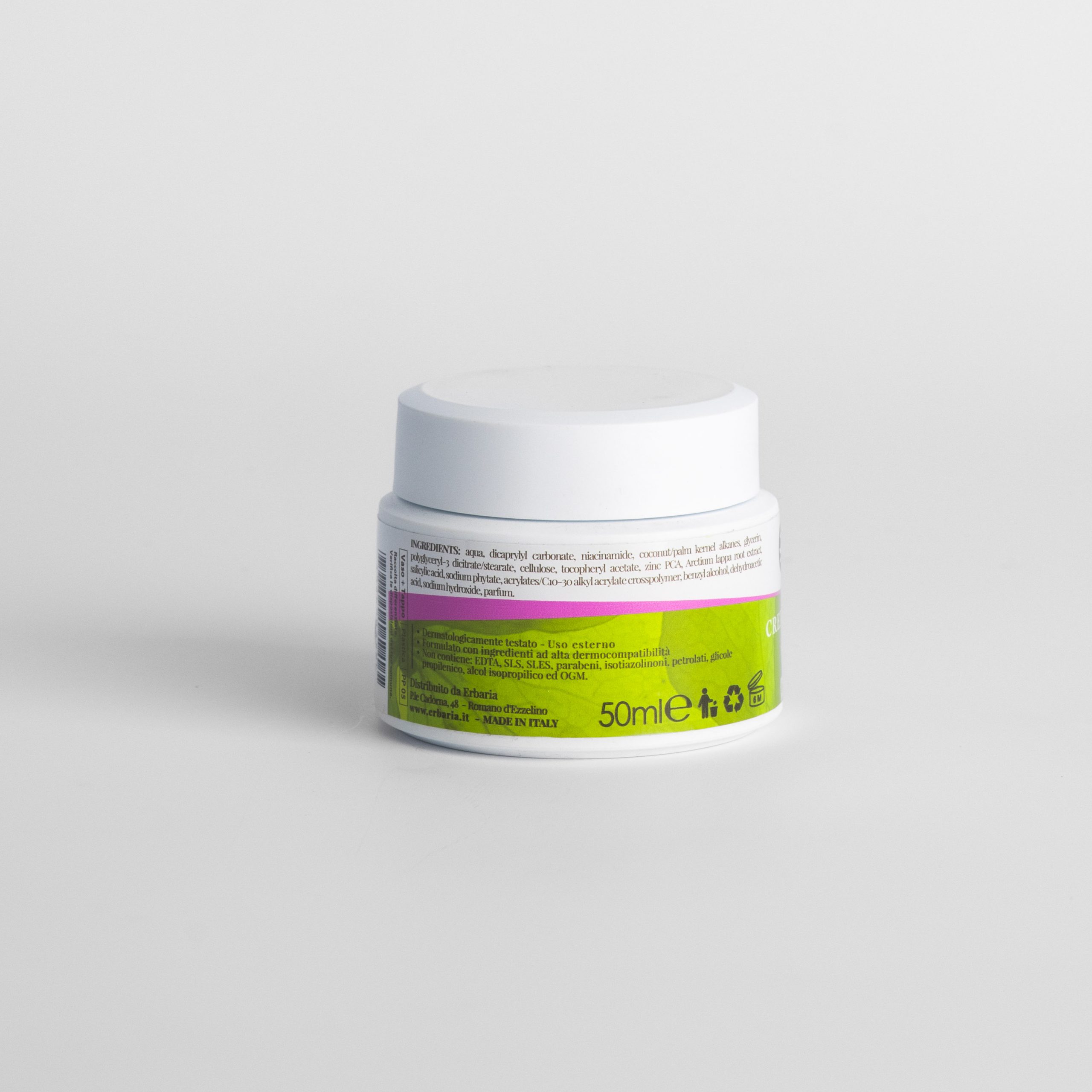 Crema dalla texture ultraleggera, a base di niacinamide, zinco, acido salicilico ed estratto di bardana, ad azione astringente e purificante.