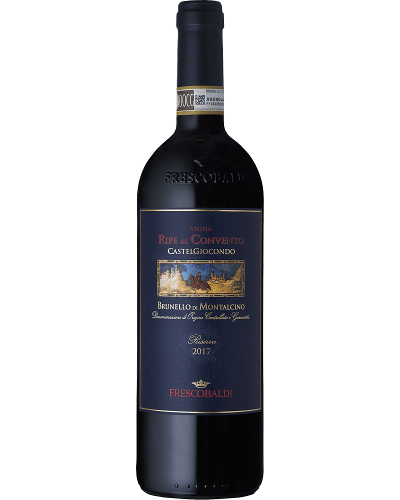 Vino rosso Brunello di Montalcino Riserva prodotto da Frescobaldi nella tenuta vinicola del Convento di Castelgiocondo da uve Sangiovese attentamente selezionate. All’arrivo in cantina l’uva è sottoposta ad ulteriore scrupoloso controllo, con cernita manuale di ogni chicco. La fermentazione avviene in serbatoi di acciaio inox a temperatura controllata con rimontaggi frequenti soprattutto durante le prime fasi, per ottenere una buona estrazione delle componenti coloranti e di struttura. Il successivo periodo di maturazione in legno ha permesso di ottenere un’ottima stabilità ed un incremento della complessità aromatica e strutturale. Ripe al Convento è pronto all’immissione sul mercato 6 anni dopo la vendemmia e solo dopo un ulteriore affinamento in bottiglia.