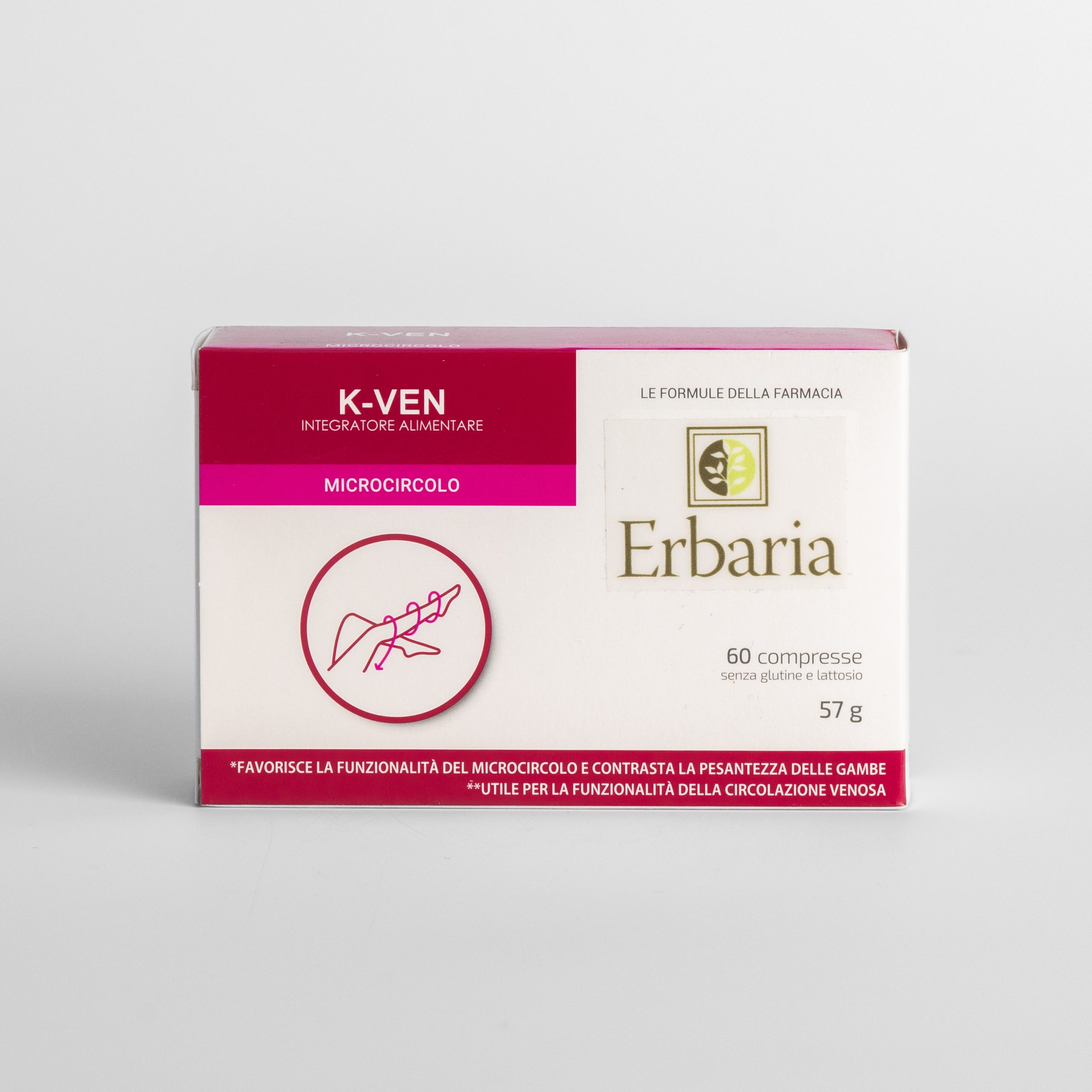K-Ven è un integratore a base di Rusco, Vite Rossa, flavonoidi e Vitamina C, che interviene nella regolare formazione del collagene e per la normale funzione dei vasi sanguigni. Gli estratti di Rusco e Vite Rossa aiutano a sostenere la funzionalità del microcircolo (contrastando la pesantezza delle gambe); il Rusco è anche utile per favorire la funzionalità della circolazione venosa a livello emorroidale. Contiene inoltre flavonoidi ad attività venotonica e protettiva nei confronti dei vasi.