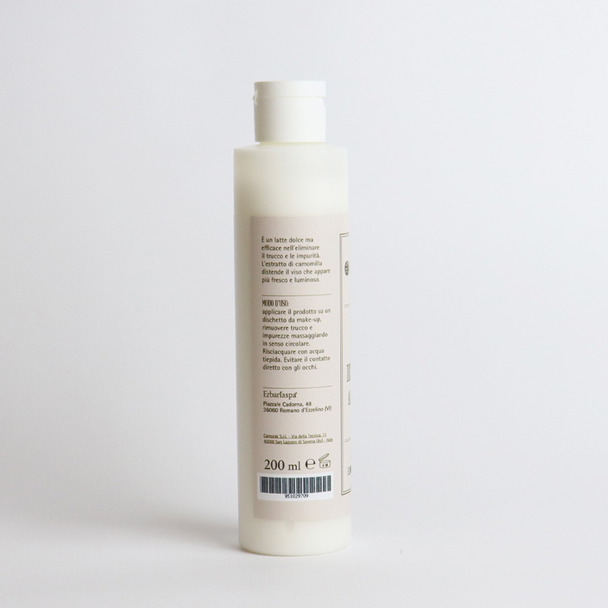 È un latte dolce ma efficace nell’eliminare il trucco e le impurità. L’estratto di camomilla distende il viso che appare più fresco e luminoso.