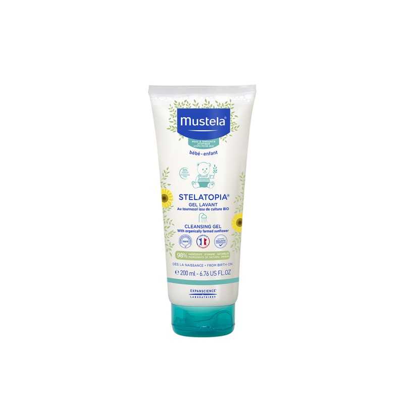 Mustela Gel Detergente Stelatopia deterge dolcemente la pelle e la rende più liscia e morbida.