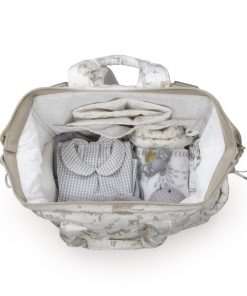 lo zaino è dotato di una tasca termica per i biberon, una tasca impermeabile per i vestiti bagnati e una tasca per il fasciatoio, incluso nella confezione. Dispone inoltre di due tasche laterali per bottiglie o biberon.