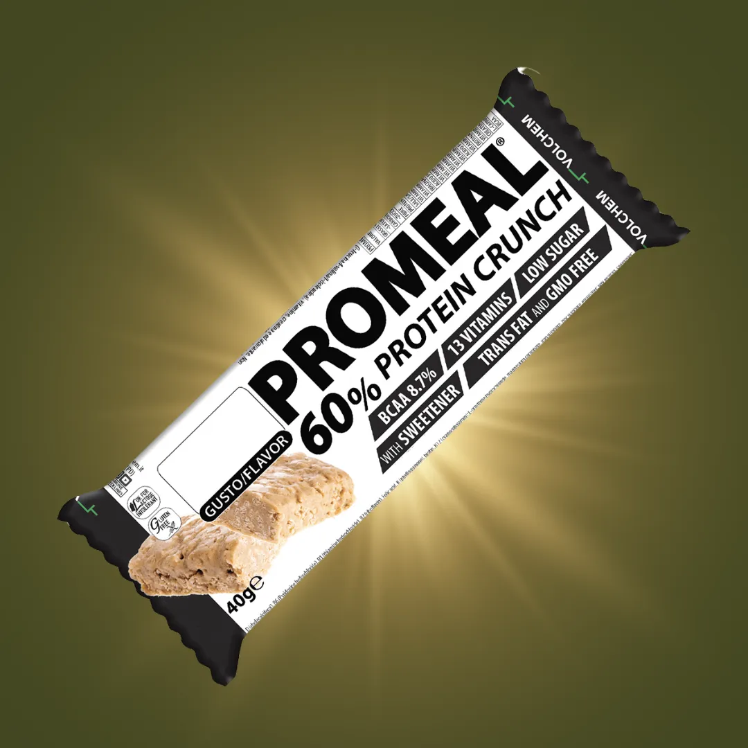 Promeal® Protein Crunch è un’ottima fonte di proteine, vitamine e nutrienti essenziali, progettata per favorire la salute muscolare, il metabolismo energetico e il benessere generale. Un’integrazione versatile, priva di lattosio e glutine, proveniente da Volchem®, marchio certificato ISO 22000.