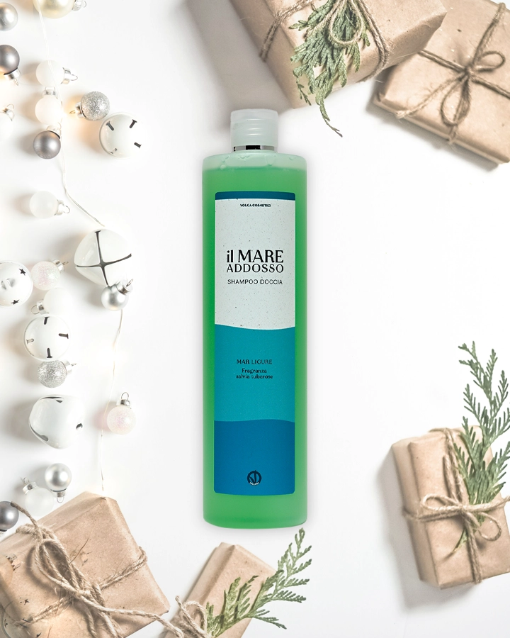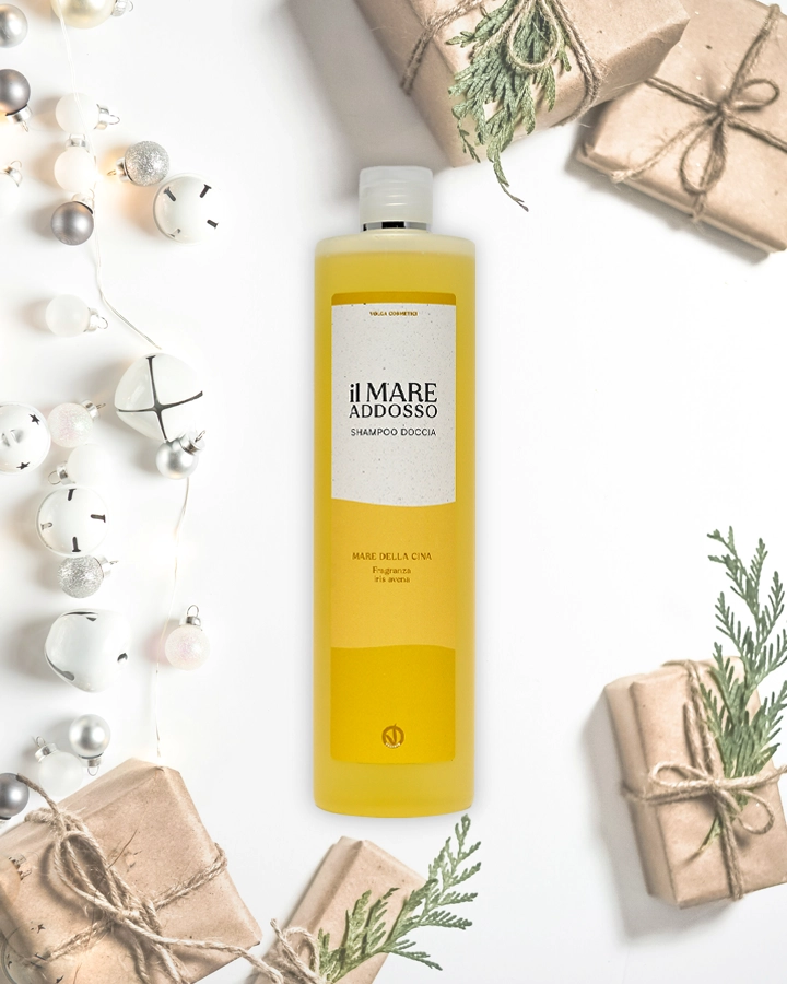 “Il mare addosso” shampoo doccia detergente e rigenerante a base di proteine del grano e Vitamina E (senza parabeni ,paraffine, siliconi, peg, petrolati).