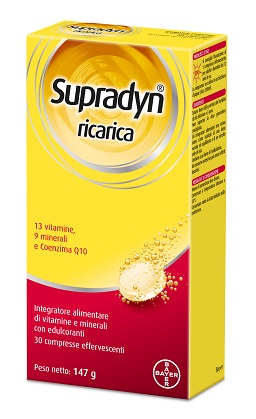Supradyn è un integratore alimentare di vitamine e minerali specificatamente formulato per assicurare un adeguato apporto giornaliero di micronutrienti nei casi di aumentato fabbisogno fisiologico o di ridotto apporto con la normale dieta.