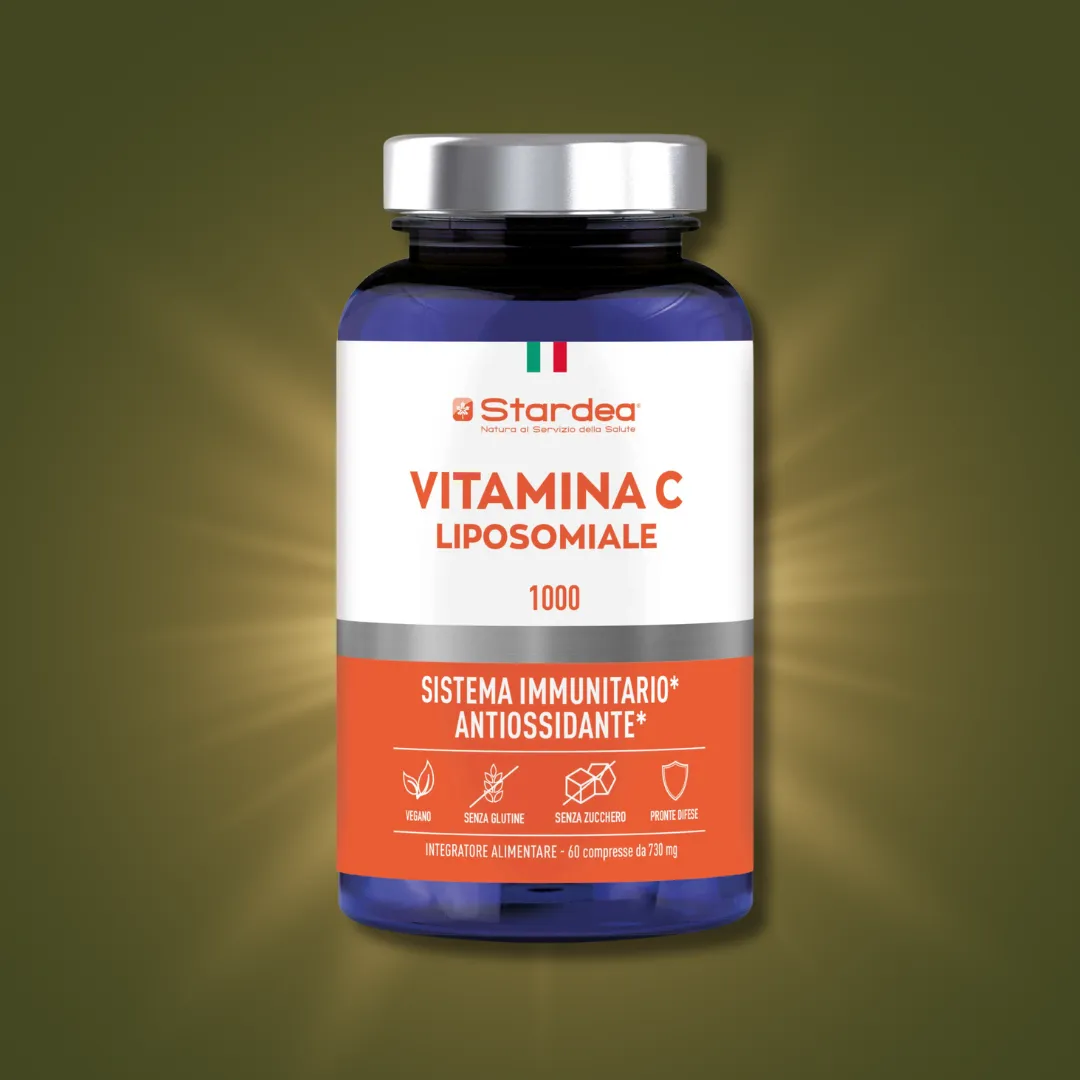 Integratore alimentare: 60 compresse da 730 mg. Stardea® VITAMINA C LIPOSOMIALE 1000 è un integratore alimentare a base di Vitamina C liposomiale*. La Vitamina C contribuisce al mantenimento della normale funzione del sistema immunitario, anche durante e dopo esercizio fisico intenso e contribuisce alla protezione delle cellule dallo stress ossidativo. Sostiene il normale funzionamento del sistema nervoso, contribuisce a ridurre stanchezza ed affaticamento, favorisce l’assorbimento del ferro e la formazione del collagene per la normale funzione di gengive, pelle, cartilagini e ossa.